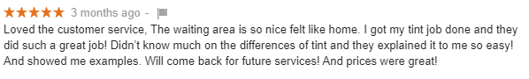 I could have sworn I reviewed this place after I got my tint done. But I had my car tinted in November of 2020 and it turned out spectacular. Would highly recommend them to anyone!